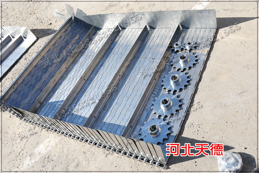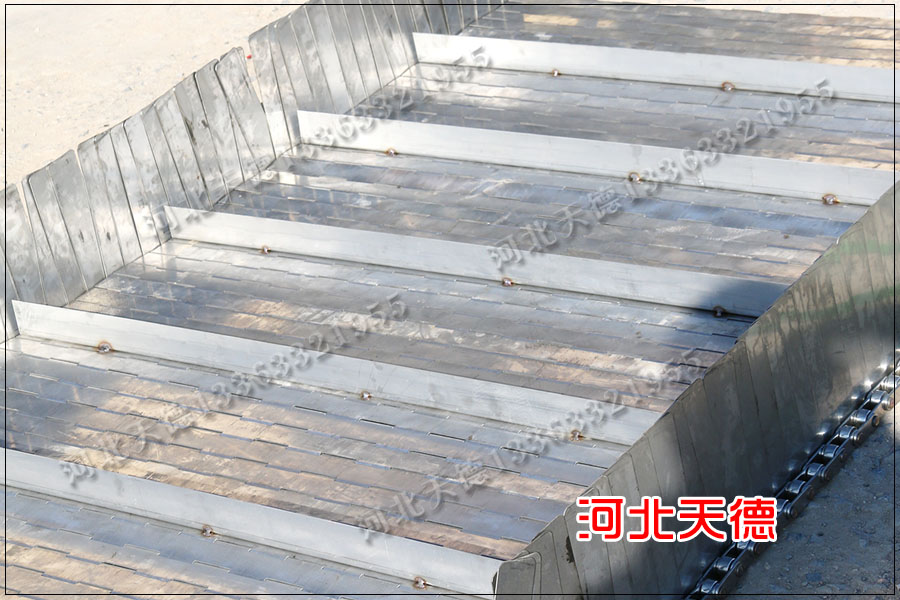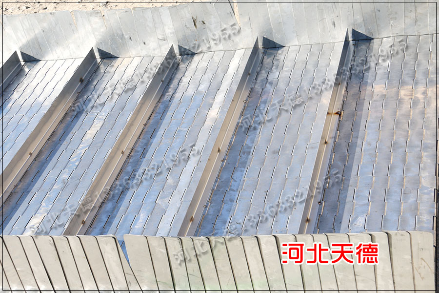 鏈板表面每隔150毫米安裝一個(gè)橫向擋板用來提升產(chǎn)品使用