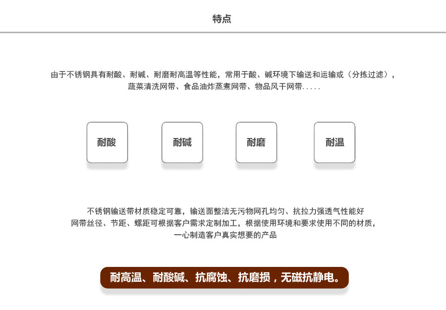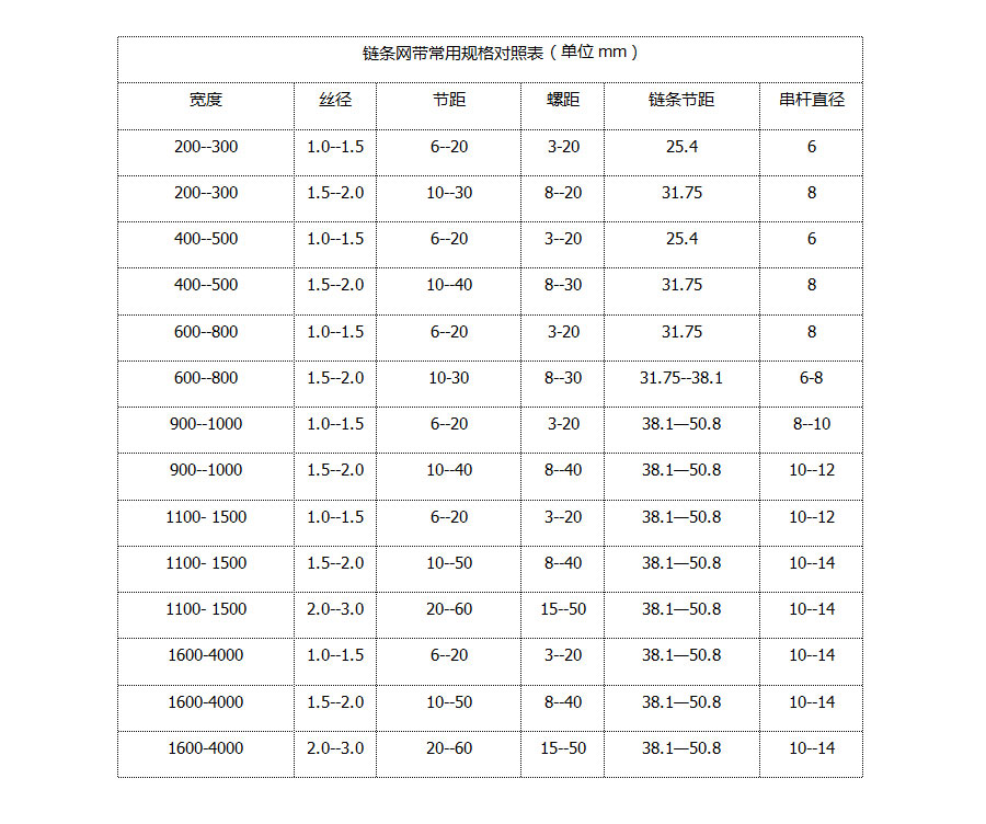 廣泛用于玻璃制品行業(yè)的退火爐網(wǎng)帶、烤花爐網(wǎng)帶等。食品加工行業(yè)、脫水蔬菜、速凍食品單凍機前處理網(wǎng)帶、鏈網(wǎng)。粉末冶金、金屬熱處理、淬火、燒結(jié)、釬焊、焙燒、光亮、發(fā)黑、軸承、滲碳高溫爐網(wǎng)帶、擋板式網(wǎng)帶、涂裝烘干線輸送網(wǎng)帶、泡沫鎳還原生產(chǎn)線網(wǎng)帶,清洗機、提升機、干燥機、烘干機、固化爐網(wǎng)帶。