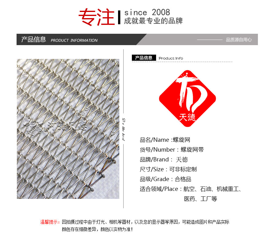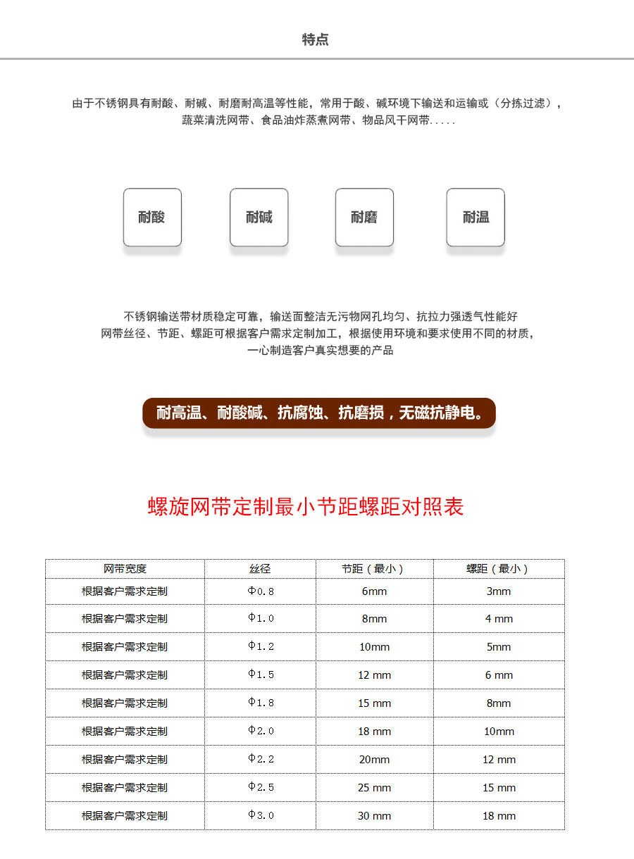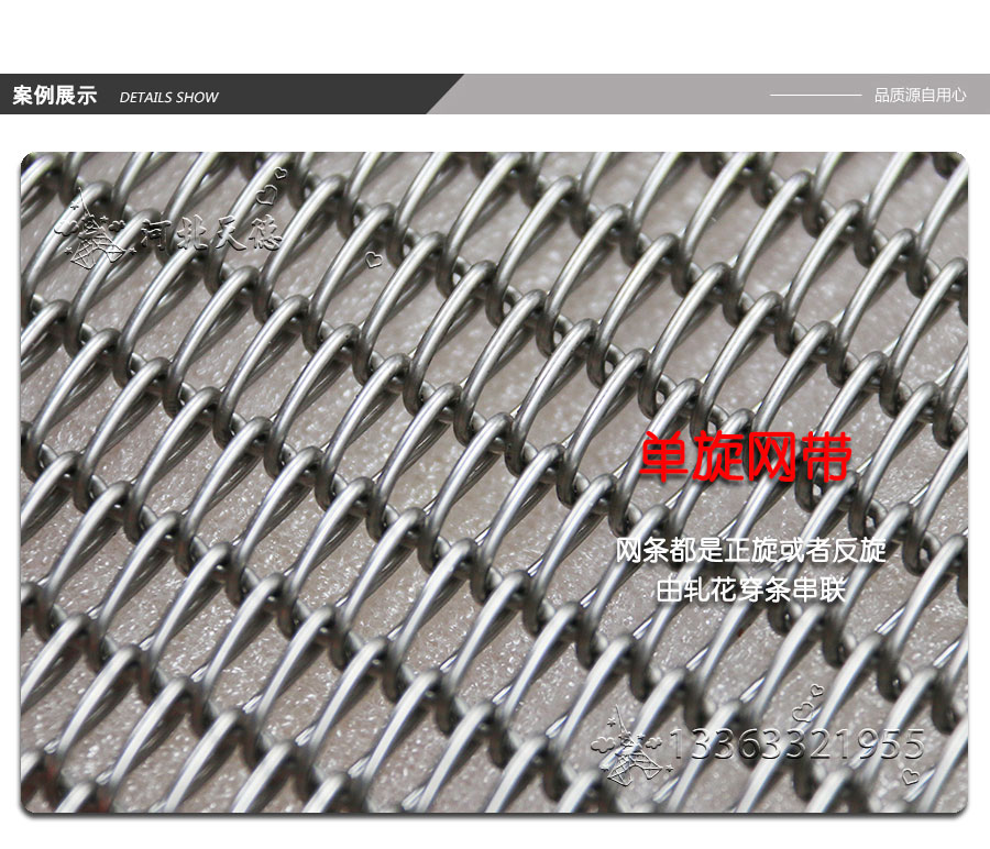 雙旋不銹鋼網(wǎng)帶屬于非標(biāo)準(zhǔn)件,我們將根據(jù)你提供的規(guī)格長(zhǎng)寬,材質(zhì),不銹鋼絲線徑,編制結(jié)構(gòu)尺寸,支軸直徑,支軸間距,鏈條型號(hào)等數(shù)據(jù)制作.