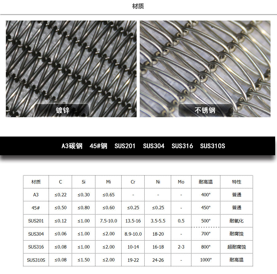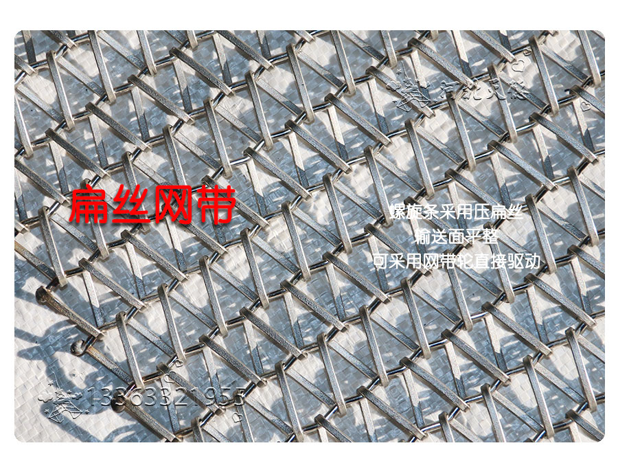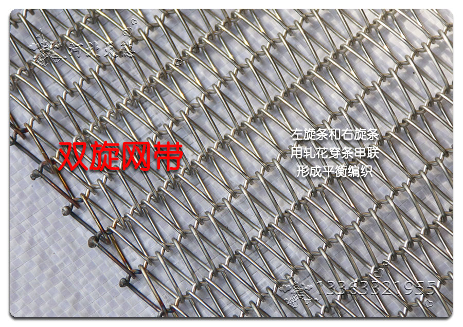 雙旋輸送帶:由左右交替的網(wǎng)條通過軋花串條聯(lián)結(jié)而成,集中了金屬絲編織網(wǎng)帶的各種優(yōu)點(diǎn),由于具有彎曲較深的串條,使各個(gè)螺旋盤條的位置取得正確的定位,因此可以減少網(wǎng)帶的變型和延伸。 雙旋輸送帶材質(zhì):不銹鋼201、不銹鋼304、不銹鋼316、不銹鋼316L、普通鋼絲、普通鐵絲、耐高溫不銹鋼、耐酸不銹鋼 雙旋輸送帶用途:廣泛用于石油、冶金、食品加工機(jī)械、制藥、玻璃、印制線路板等輸送設(shè)備。