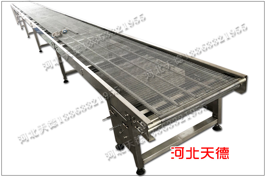 下面這一臺乙型網(wǎng)帶輸送機(jī)是湖北客戶定制的,用來輸送輕載物品,該設(shè)備采用的是乙型網(wǎng)帶來傳送,這種金屬輸送帶不帶鏈條,成本低。