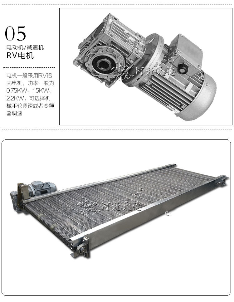 該輸送機用于物料的輸送。采用不銹鋼網(wǎng)帶作為載體,適用于各種食品行業(yè)的烘干、去濕、冷凍等、熱處理等;不銹鋼制成,具有耐高溫、便于清洗等特點。輸送機應用行業(yè):食品、冶金、電力、煤炭、化工、建材、碼頭、糧食等。