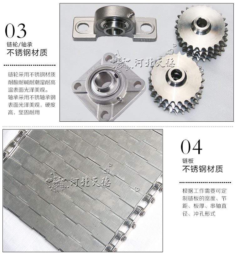 2.鏈板有不銹鋼和工程塑料等材質(zhì),規(guī)格品種繁多,可根據(jù)輸送物料和工藝要求選用,能滿(mǎn)足各行各業(yè)不同的需求。