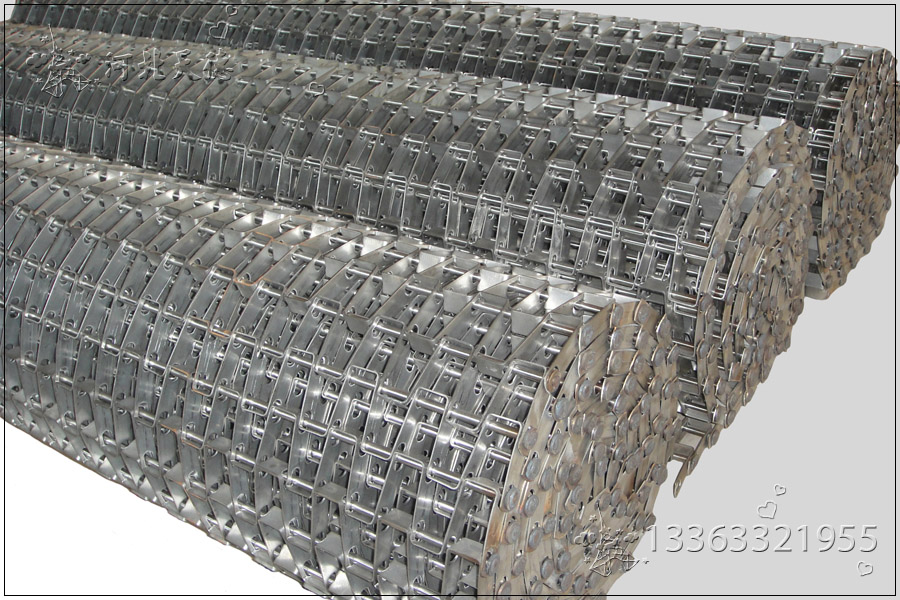 這種輸送帶采用的是由金屬片與圓金屬絲組成的,輸送帶孔縫隙大,
