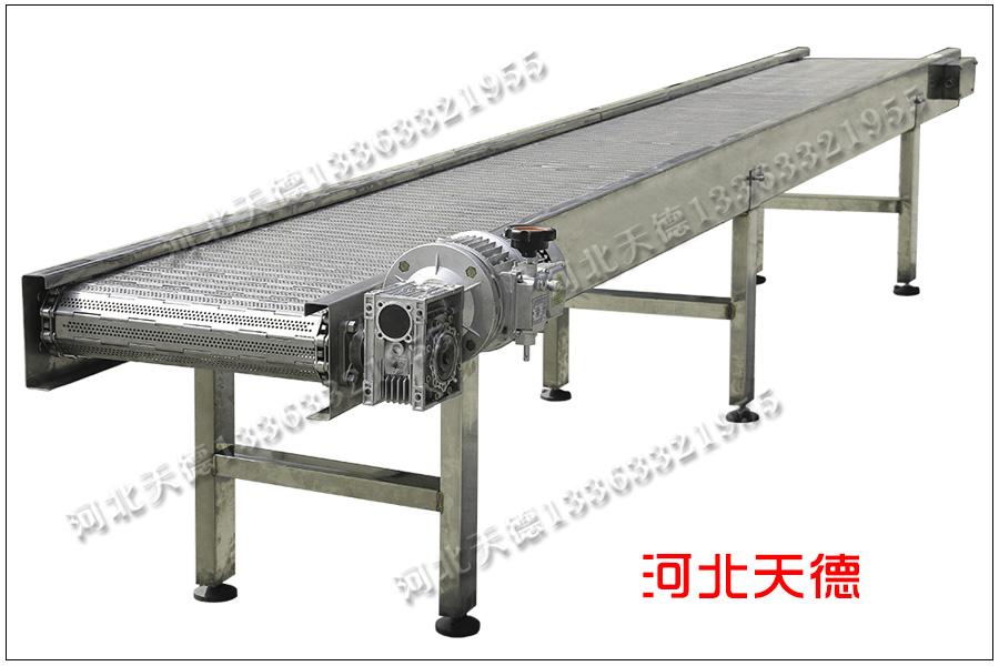 江蘇鹽城孫總定制的鏈板輸送機,采用不銹鋼304材質(zhì),用來輸送餐具到下一道工序進行清洗,長期在水利浸泡使用,為了使用時間長久所以孫總定制的整機為不銹鋼304材質(zhì)。